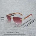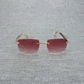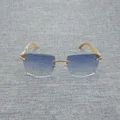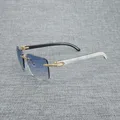 Vintage Rhinestone Black White Buffalo Horn Rimless Sunglasses Men Wood Sun Glasses Metal Frame Shades for Summer Club Eyewear