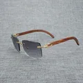 Vintage Natural Wood Sunglasses Men Buffalo Horn Rimless Frame Eyeglasses Women for Outdoor Accessorie Oculos Square Gafas 012N